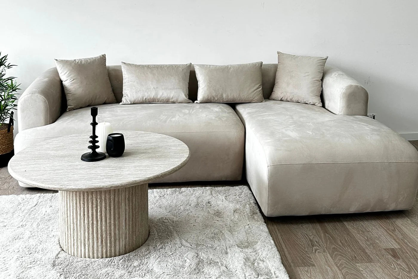 Canapé d'angle Ela Tissu Velours Beige