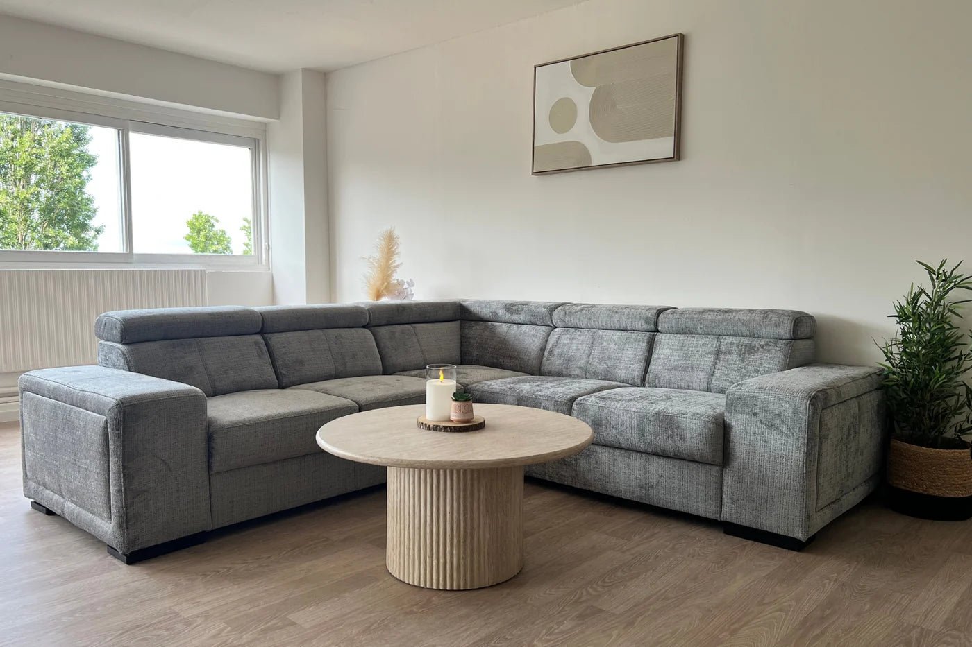 Le canapé d'angle Karola, convertible est le choix parfait pour ceux qui recherchent un mélange de style et de confort. Venez le découvrir dès maintenant et donnez à votre salon une allure élégante et cosy !