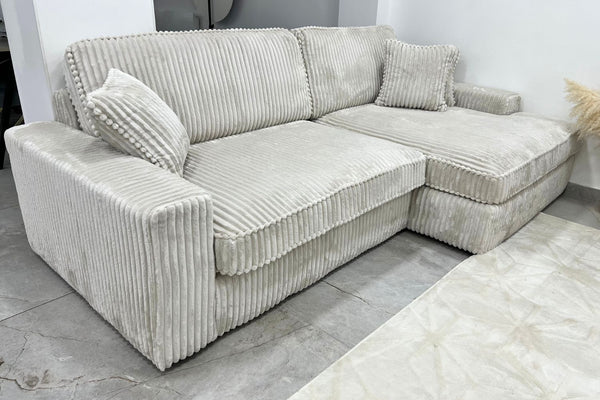 Canapé d’angle Mini Lexus – 260 x 150 cm – Déhoussable – Grosse côte blanc cassé