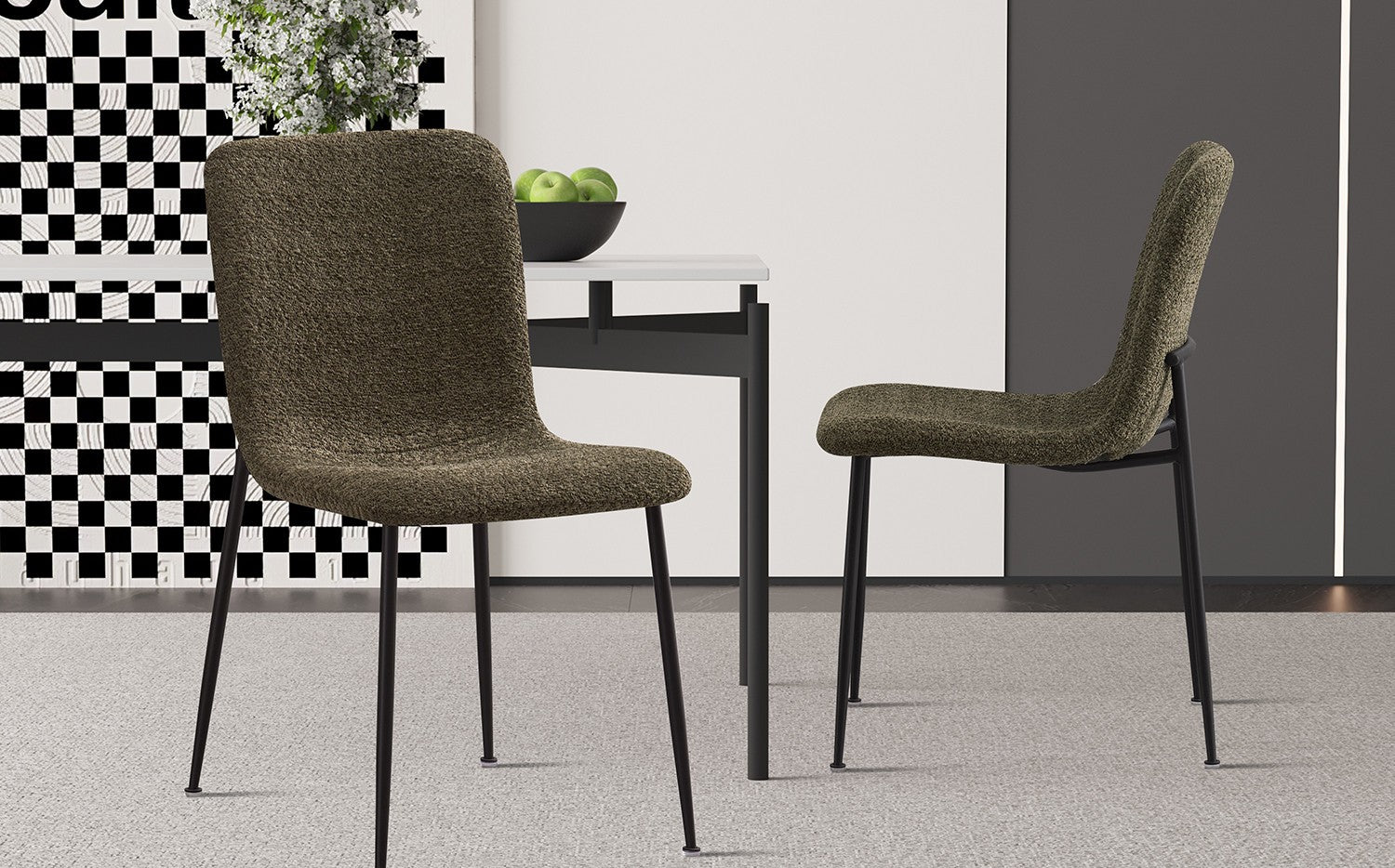 La chaise Alice se distingue par une alliance harmonieuse entre la douceur du tissu bouclé et l’élégance contemporaine du piètement métallique noir. Elle conjugue confort, style et praticité, et constitue un excellent choix pour enrichir un espace d’intérieur moderne.