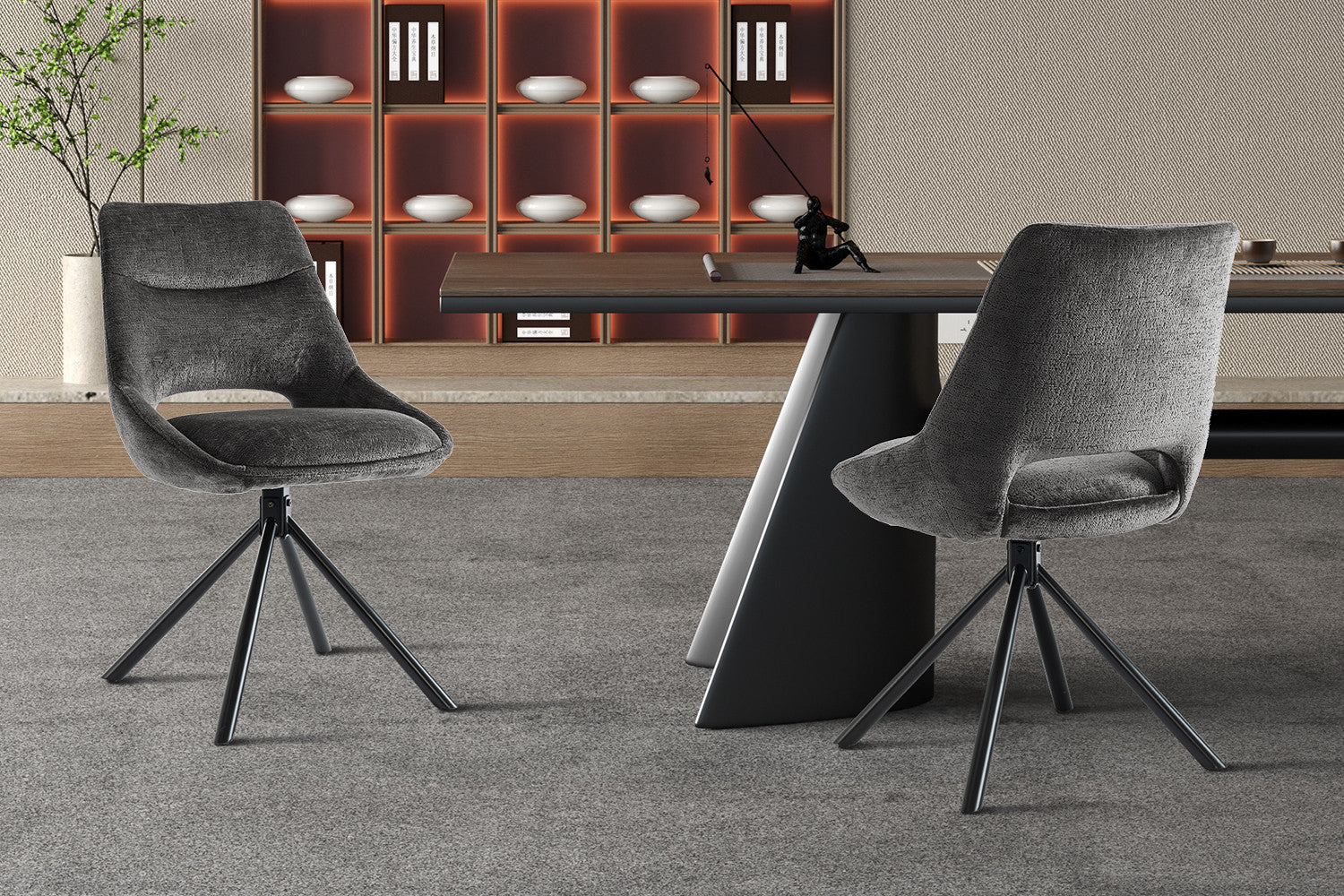 La chaise Dante allie élégance et confort grâce à son revêtement en tissu Marbella, doux et résistant. Son piètement en métal apporte une touche moderne et assure une excellente stabilité. Un siège design et polyvalent, idéal pour sublimer une salle à manger ou un espace professionnel.