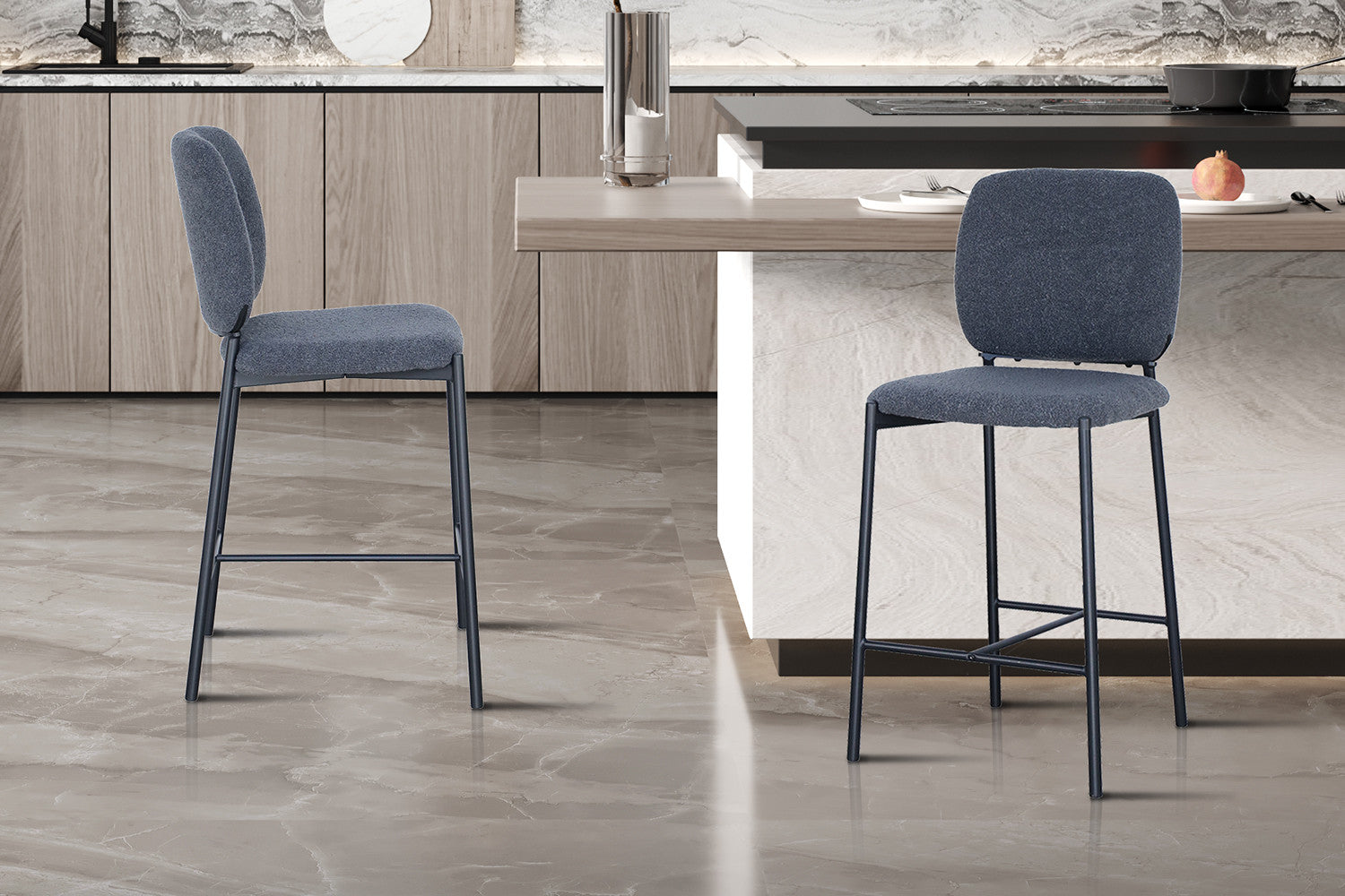Le tabouret de bar Sophia est design et moderne avec assise confortable en tissu chenille et piètement en métal robuste, parfait pour un bar ou un comptoir de cuisine. Style élégant et contemporain qui s’intègre facilement à différents intérieurs.