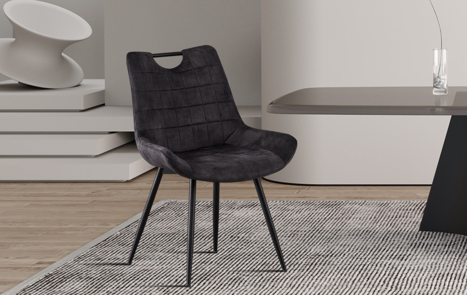 Élégante et moderne, la chaise Nina séduit avec son revêtement en velours synthétique doux et résistant. Ses pieds en métal offrent stabilité et style, faisant de ce modèle un choix idéal pour apporter une touche contemporaine à votre intérieur.