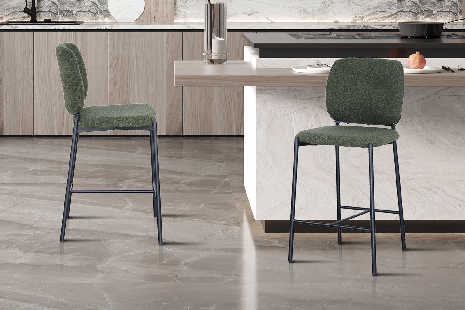 Chaise de comptoir Sophia Tissu Vert