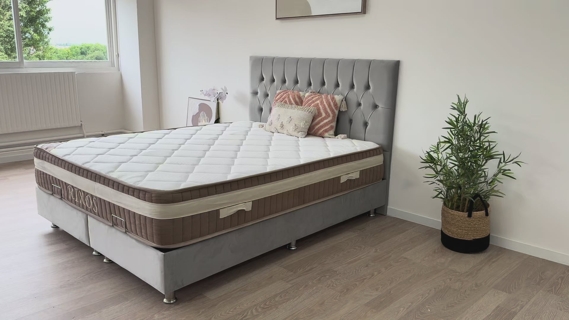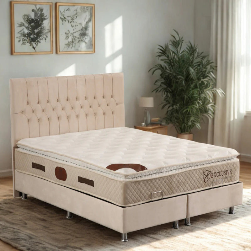- Tissu en velours Beige : doux au toucher et élégant.