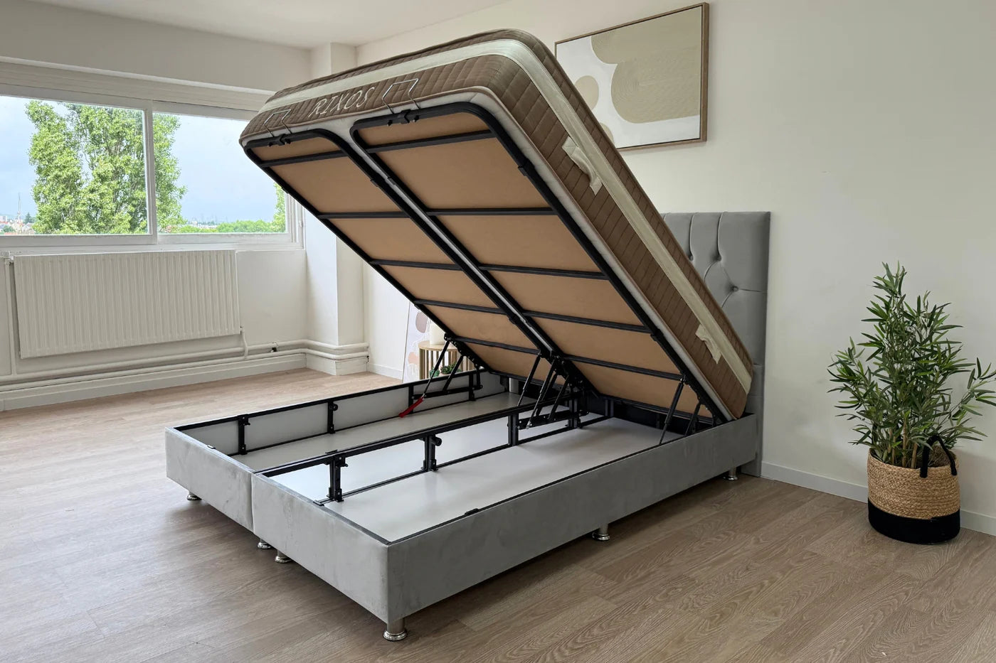 ✓ Fonction : Lit coffre relevable avec espace de rangement